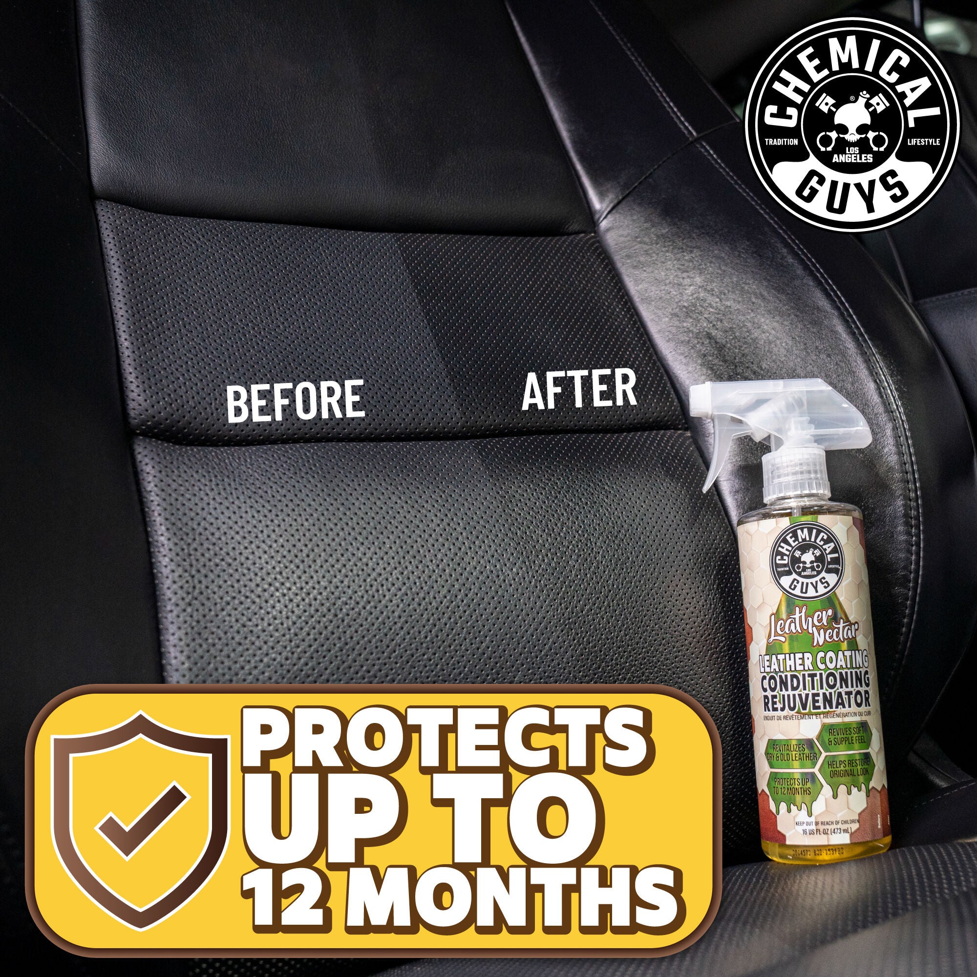 Chemical Guys Leather Nectar Leather Coating Conditioning Rejuvenator is a powerful leather restorer that penetrates deep into the pores of leather. moisturizing it to restore long lost softness. suppleness. and richness to help maintain and prolong the elegant look. feel. texture. and brilliance of leather.
