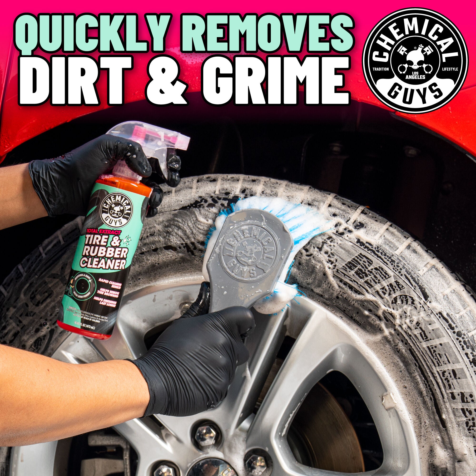Revitalize your tires with Total Extract Tire & Rubber Cleaner. This essential detailing product eliminates dirt. tire blooming. grime. discoloration. and old dressing buildup. restoring your rubber tires and trim.